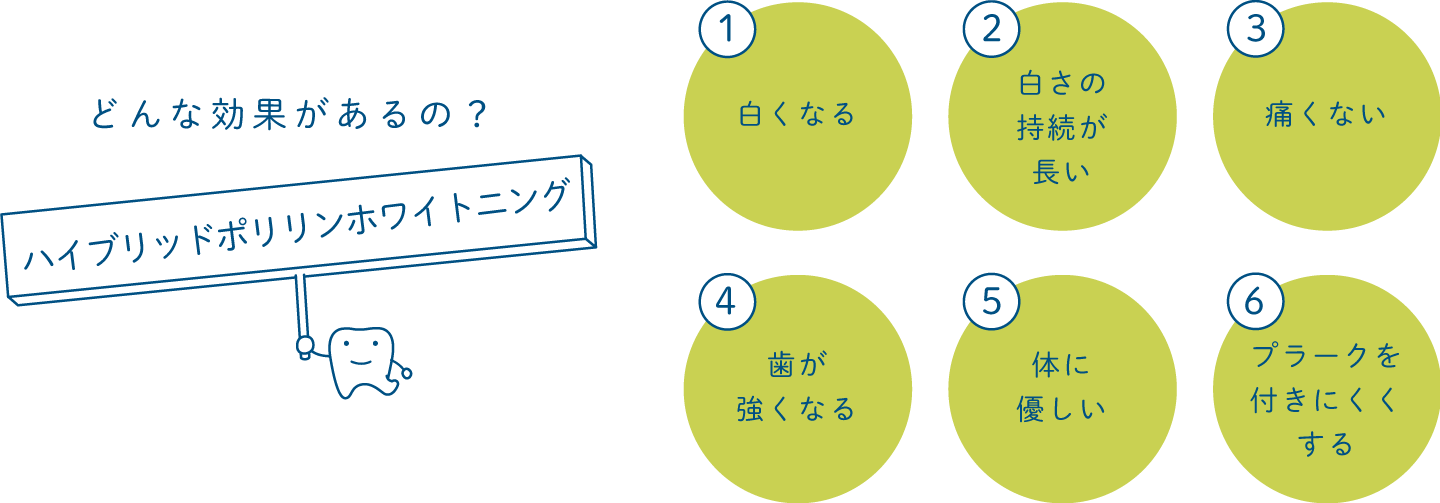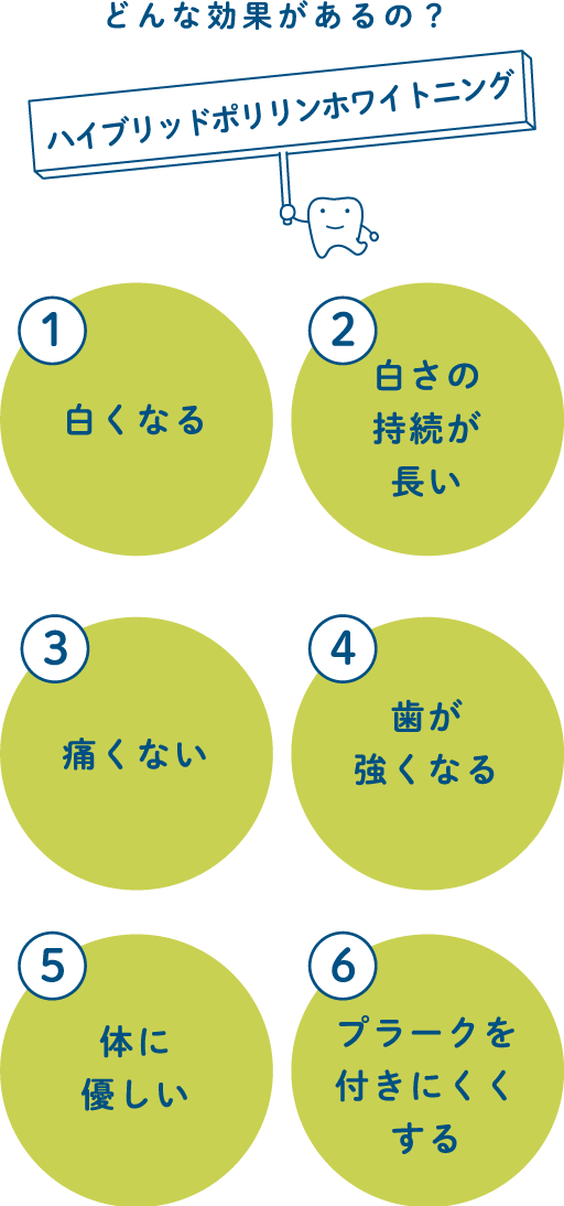 当院では、そんなイメージやお悩みを持っている方に、分割ポリリン酸による「スーパーポリリンホワイトニング」とαパウダーによる「cap-システム」を併用した「ハイブリッドポリリンホワイトニング」をおすすめしています。ただ白くするだけではなく“歯を強くする”ことを可能にした、体に優しいハイブリットポリリンホワイトニングです。