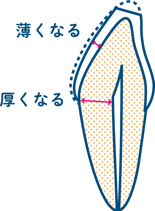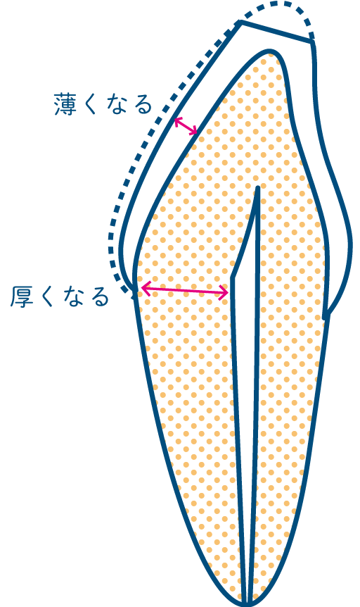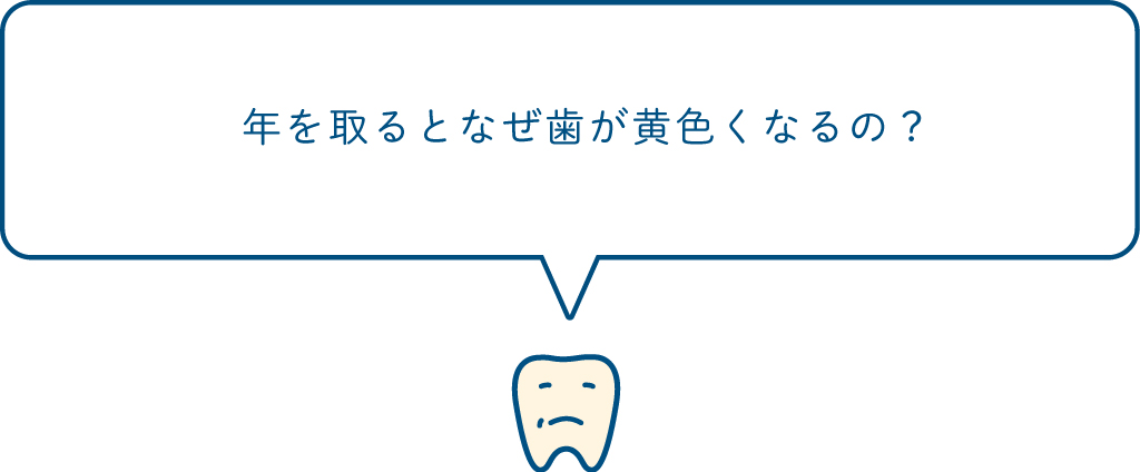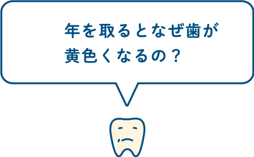 エナメル質が年齢とともに薄くなり、その下層の象牙質の黄色味が強く見えると、歯自体が黄ばんで見えてしまうのです。