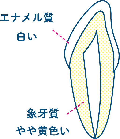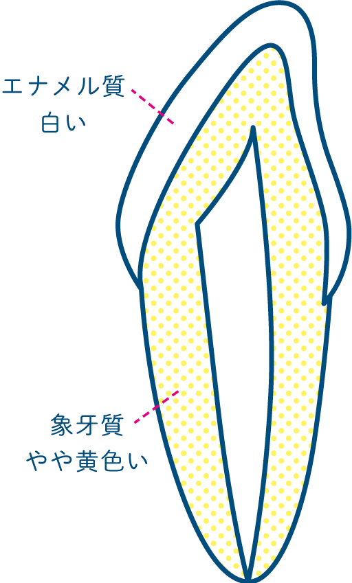 歯が白く見えるのは、歯の表面のエナメル質が白いからです。
