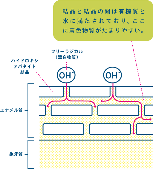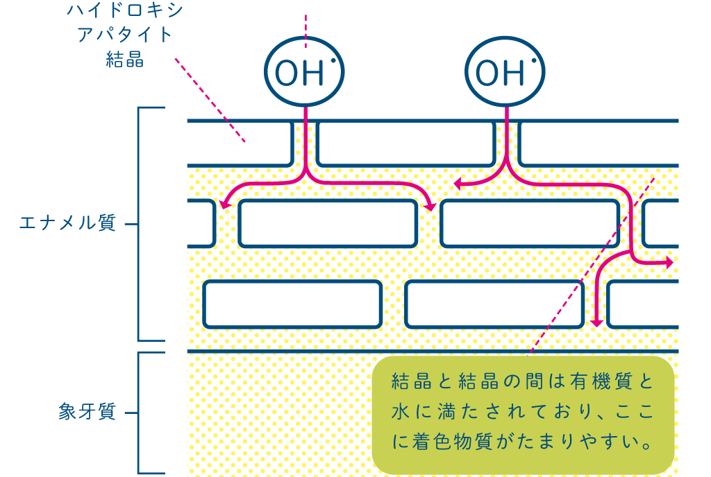 結晶間の隙間が狭いので、漂白物質(フリーラジカル)が、深部まで到達しにくい。