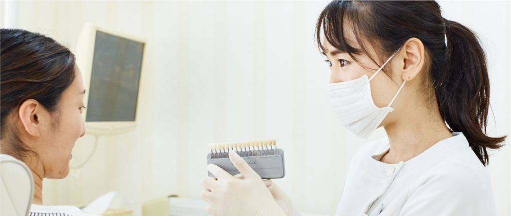 セラミック治療を始めるために私たちは、まずは歯を支える骨と歯茎、歯の根を治します。その後、患者さまひとりひとりに合った歯の形・色を歯科技工士にオーダーしていきます。
