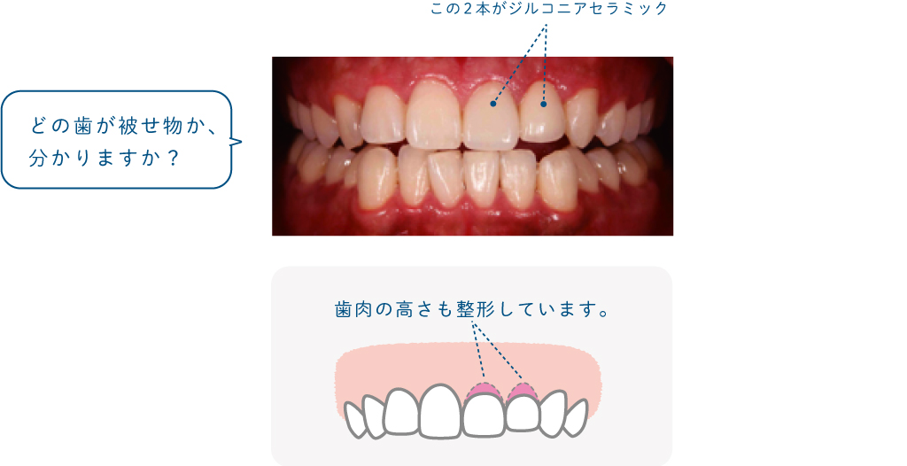 イメージを変えることよりも「ご自分の歯に、いかになじませるか?」が大事になります。写真を撮影し、時には技工士立ち合いの元(別途料金発生:1万円)、誰にも偽物だと気づかれない歯の作成を目指します。