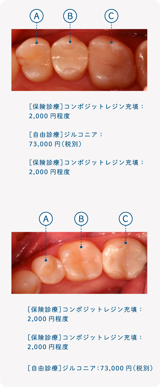 例えば銀歯が3本あった時、全部セラミックで治したいけど高いなぁ…ということありますよね。当院では、コストを抑えるために治療法を組み合わせる提案もしています。