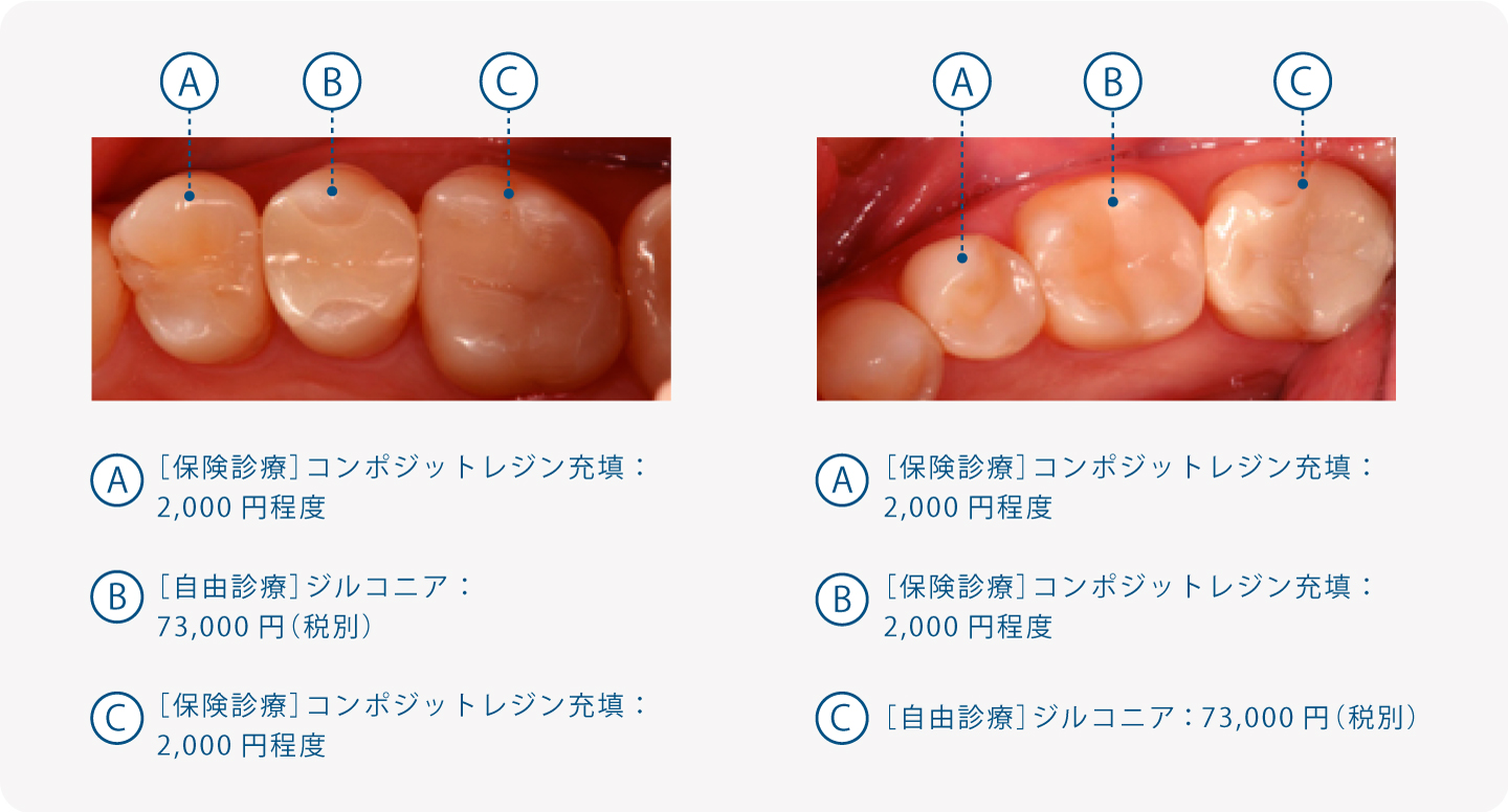 下の写真で、どの歯が自由診療で、どの歯が保険適用か分かりますか?