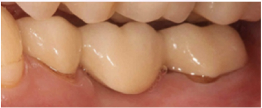 失った歯の両隣の歯を削り、3本が一体となった歯を合着する方法(失った歯の本数に合わせて、3本以上のブリッジも可能です)。両隣の歯を削ることこそデメリットですが、歴史ある治療法で、経年的な変化に合わせて噛み合わせをきちんと調整すれば成功成績も高いです。保険診療と自由診療が選べます。
